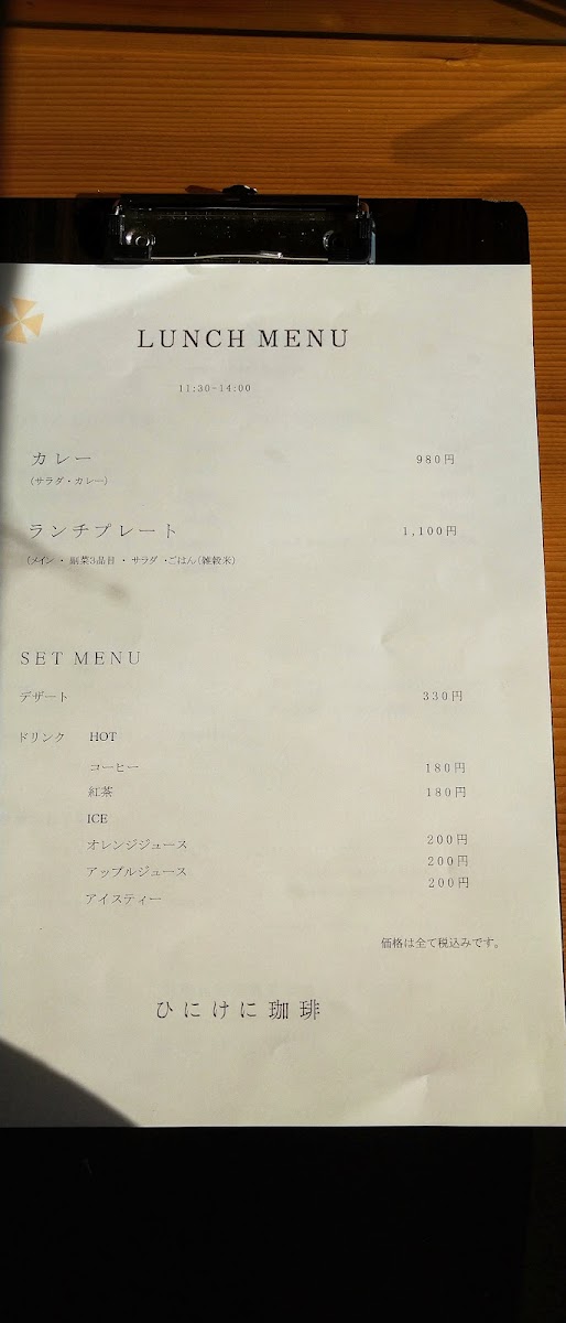 Hinikeni Coffee Menu